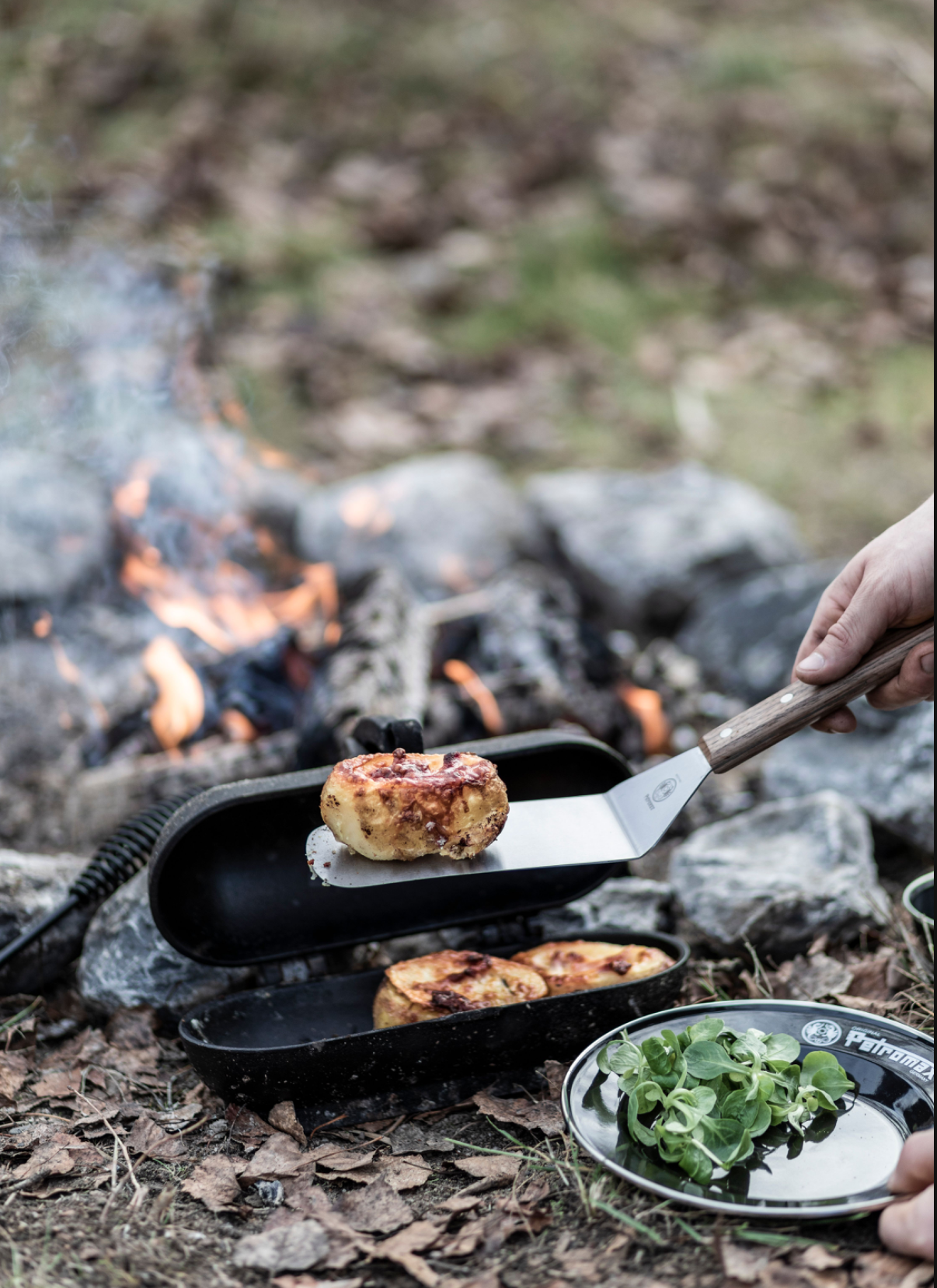 Potatoes baked in the embers, whether as a main course or as a side dish to juicy steaks, go perfectly with an adventure menu. With the cast iron potato cooker you can prepare potatoes and vegetables with the characteristic roasted taste.