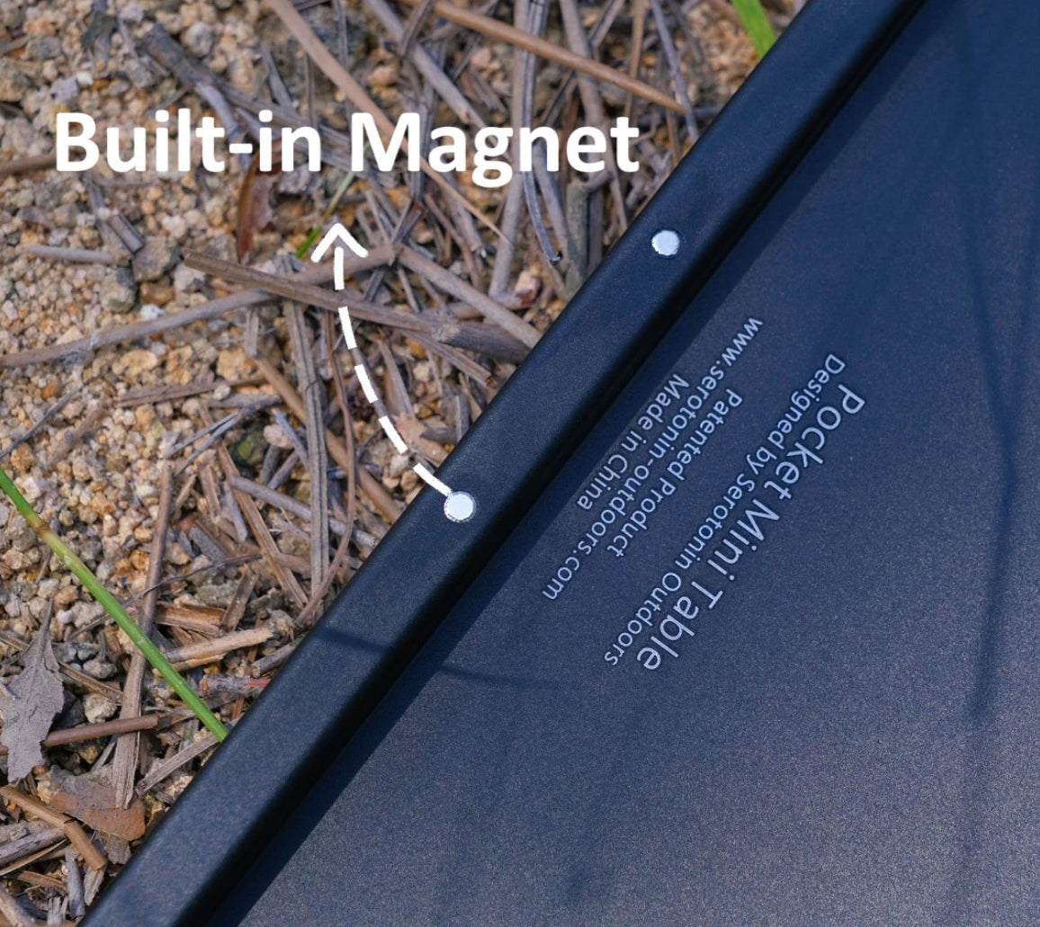 Crafted from high-quality aluminum alloy and 304 stainless steel, the Pocket Mini Table is both lightweight and robust. Unlike other wooden or nylon tabletops, the aluminum surface is oxidation-treated, making it waterproof, corrosion-resistant, scratch-resistant, and easy to clean.