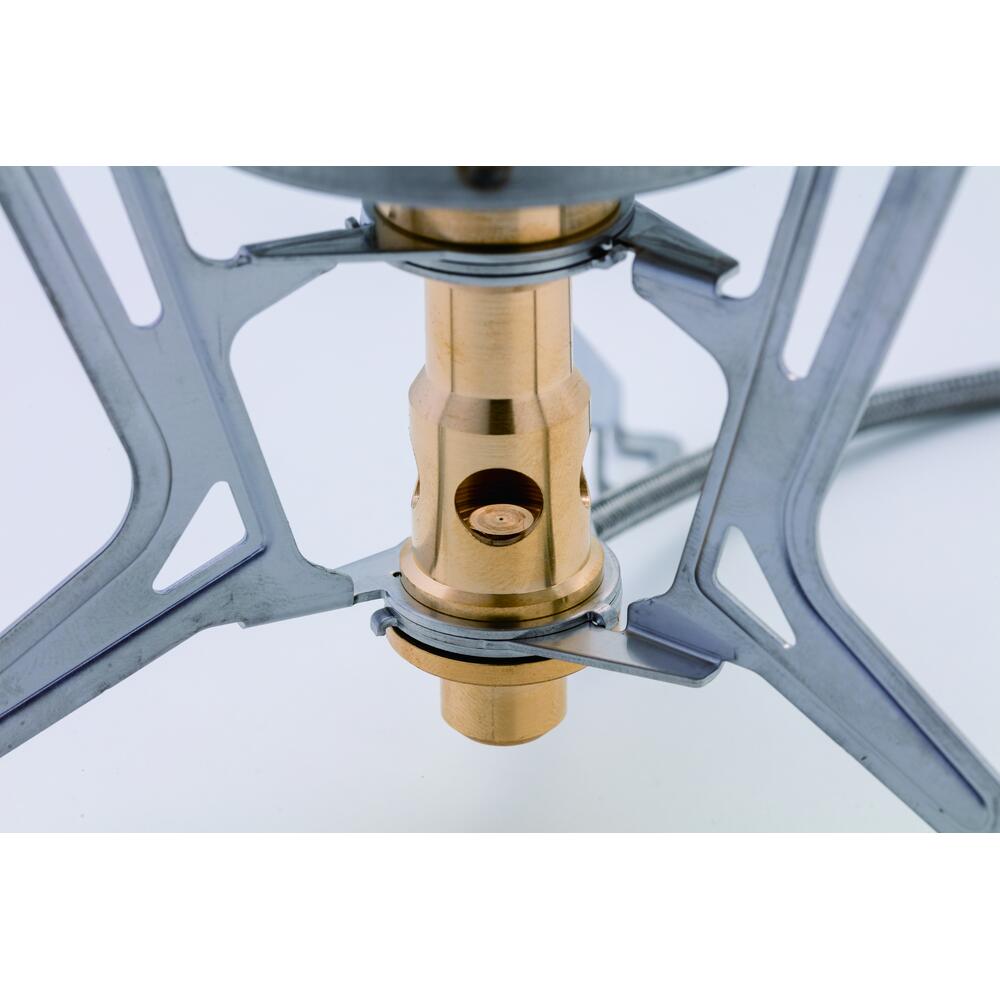 Upgraded for mountain use this stove features an improved burner head with a concave crater shape, which provides excellent performance. This burner head has been uniquely designed to produce over 300 sub-flames and burns quietly yet produces a strong flame even in windy conditions.