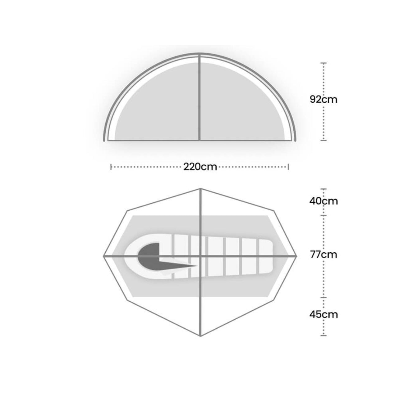 Length: 220cm, Height: 92cm, Width: 80cm , Front Porch Width: 50cm , Additional Back Porch Width: 40cm